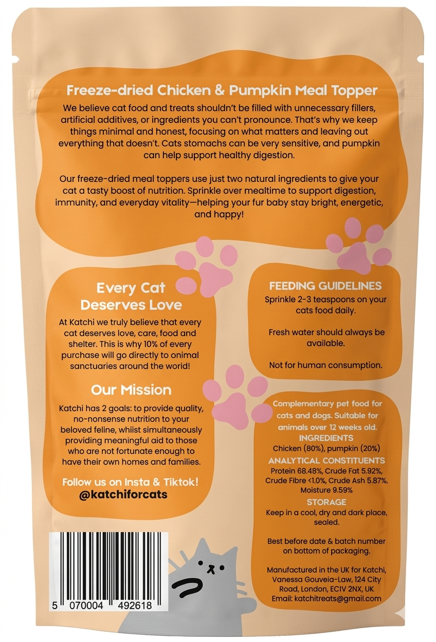 Give your pet’s meals a gentle, nourishing boost with our Chicken & Pumpkin Meal Topper—made with just two carefully selected ingredients and nothing unnecessary. Freeze-dried to help preserve natural nutrients and flavour, it’s a simple way to support everyday wellbeing through better digestive health for cats and dogs.
